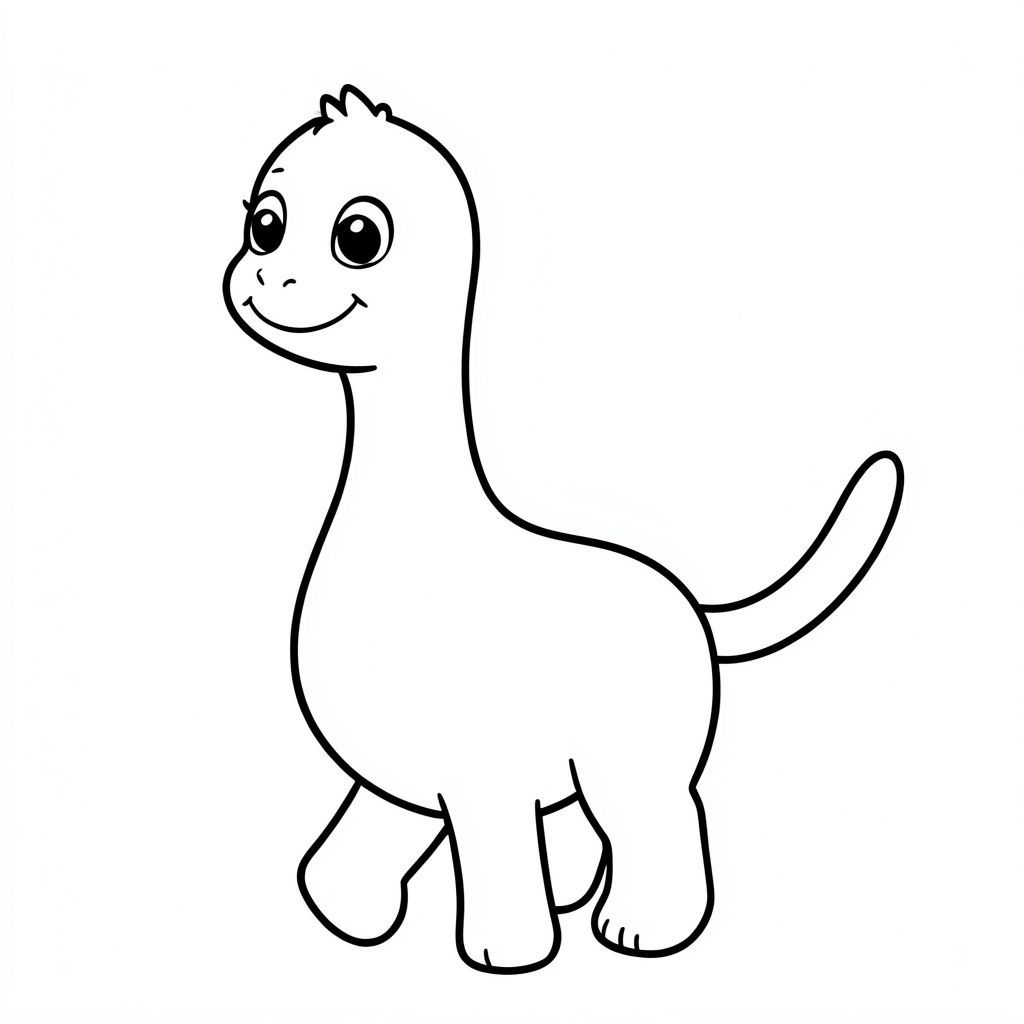Tạo một Jobaria dễ thương, theo phong cách hoạt hình cho một bức tranh tô màu dành cho trẻ em. Làm cho nó trông thân thiện với đôi mắt to, tròn và nụ cười dịu dàng. Để lộ cổ dài, đầu nhỏ, chân giống như cột trụ và một cái đuôi dài duy nhất. Giữ cho cơ thể mềm mại, tròn trịa và dễ tiếp cận cho trẻ em. Chỉ nghệ thuật đường nét, không màu, không nền, đường viền rõ ràng để dễ dàng tô màu. Tư thế nên đứng hoặc đi bộ, vui tươi và đơn giản để trẻ tô màu.