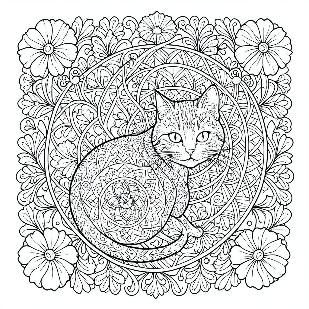 Tạo ra một hình minh họa đen trắng có độ chi tiết cao về một con mèo. Trọng tâm chính là một mẫu zentangle phức tạp, đan xen chiếm ưu thế trong bố cục. Mẫu nên kết hợp các hình dạng chồng lên nhau và các họa tiết nhỏ, lặp lại, tạo cảm giác có chiều sâu và sự thú vị về thị giác. Bao gồm một yếu tố mandala được đặt cẩn thận - một hình tròn lặp đi lặp lại với các gradient tinh tế và các nút được kết nối với nhau - được tích hợp tinh tế trong zentangle. Sử dụng các đường viền hoa trang trí - cách điệu, hình dạng hoa hơi trừu tượng - được sắp xếp xung quanh con mèo và bên trong zentangle, thêm một lớp kết cấu và độ phức tạp về thị giác. Mỗi yếu tố phải có các đường nét cực kỳ mịn, sắc nét và hơi góc cạnh - hãy nghĩ đến các chi tiết được vẽ tỉ mỉ - tạo cảm giác rõ ràng và sắc nét đặc biệt. Tâm trạng tổng thể phải thanh thản và hơi bí ẩn. Con mèo được đặt hơi lệch tâm, với một đường cong nhẹ nhàng trên cơ thể, nhấn mạnh sự tương tác năng động của các hoa văn. Giới hạn bảng màu ở màu đen trắng đơn sắc, nhấn mạnh độ tương phản và chiều sâu. Không có từ, văn bản, thư pháp, màu sắc hoặc tô màu đặc. Chỉ tập trung vào việc tạo ra thiết kế dựa trên đường nét phức tạp. Nhấn mạnh vào các đường nhiều lớp và bóng mờ tinh tế để xây dựng độ phức tạp của thị giác. Tính thẩm mỹ tổng thể nên tinh tế và tinh tế. --- Hãy cho tôi biết nếu bạn muốn bất kỳ điều chỉnh nào đối với lời nhắc!, trang tô màu đen trắng, phong cách lowbook, nghệ thuật đường nét, đơn sắc, không màu, không đổ bóng, không xám, không tô màu, nền trắng, chỉ phác thảo