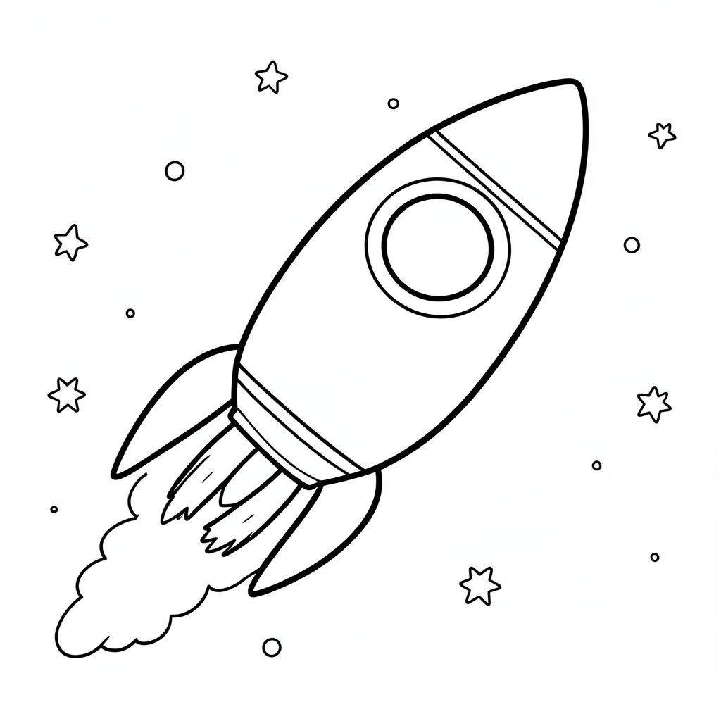 Tàu tên lửa thân thiện bay trong không gian, phác thảo đơn giản cho trẻ em"