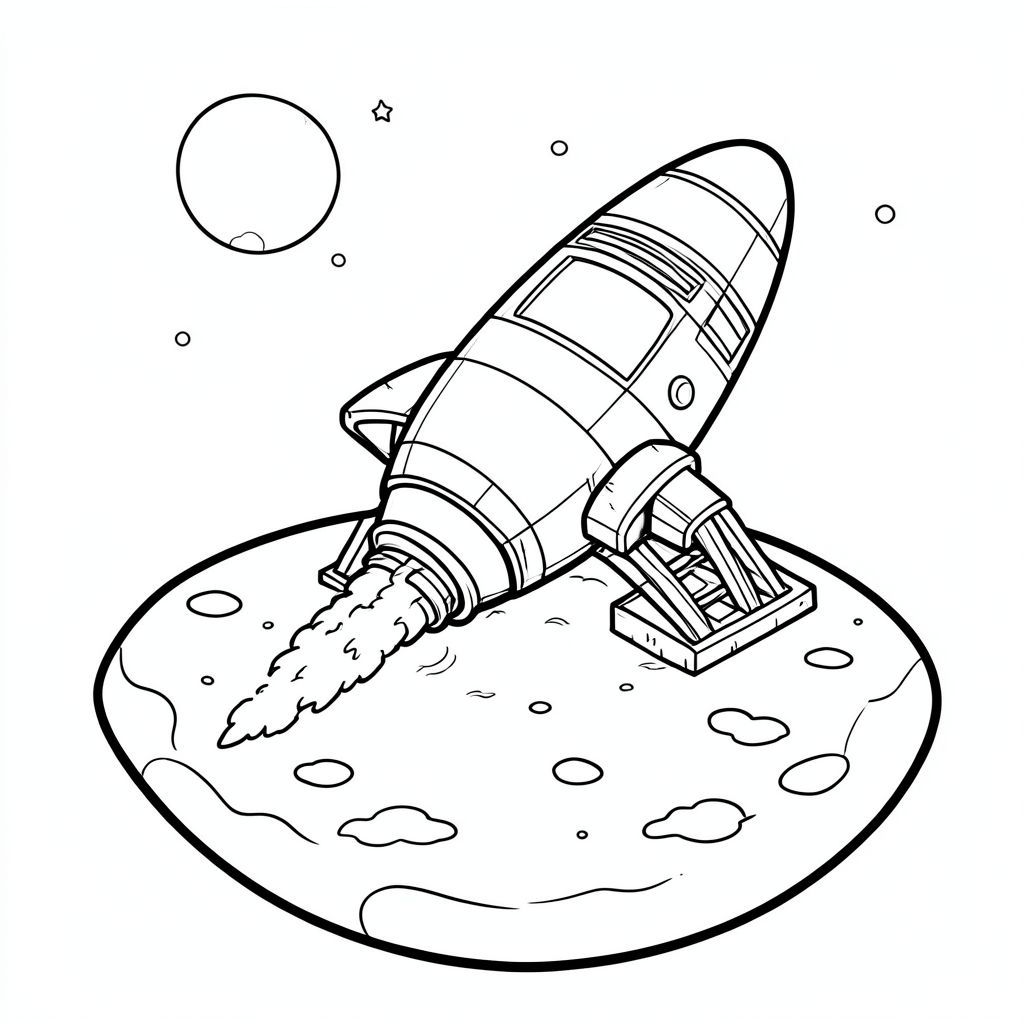 Tàu vũ trụ hạ cánh trên mặt trăng, phong cách hoạt hình, trang tô màu có thể in được"