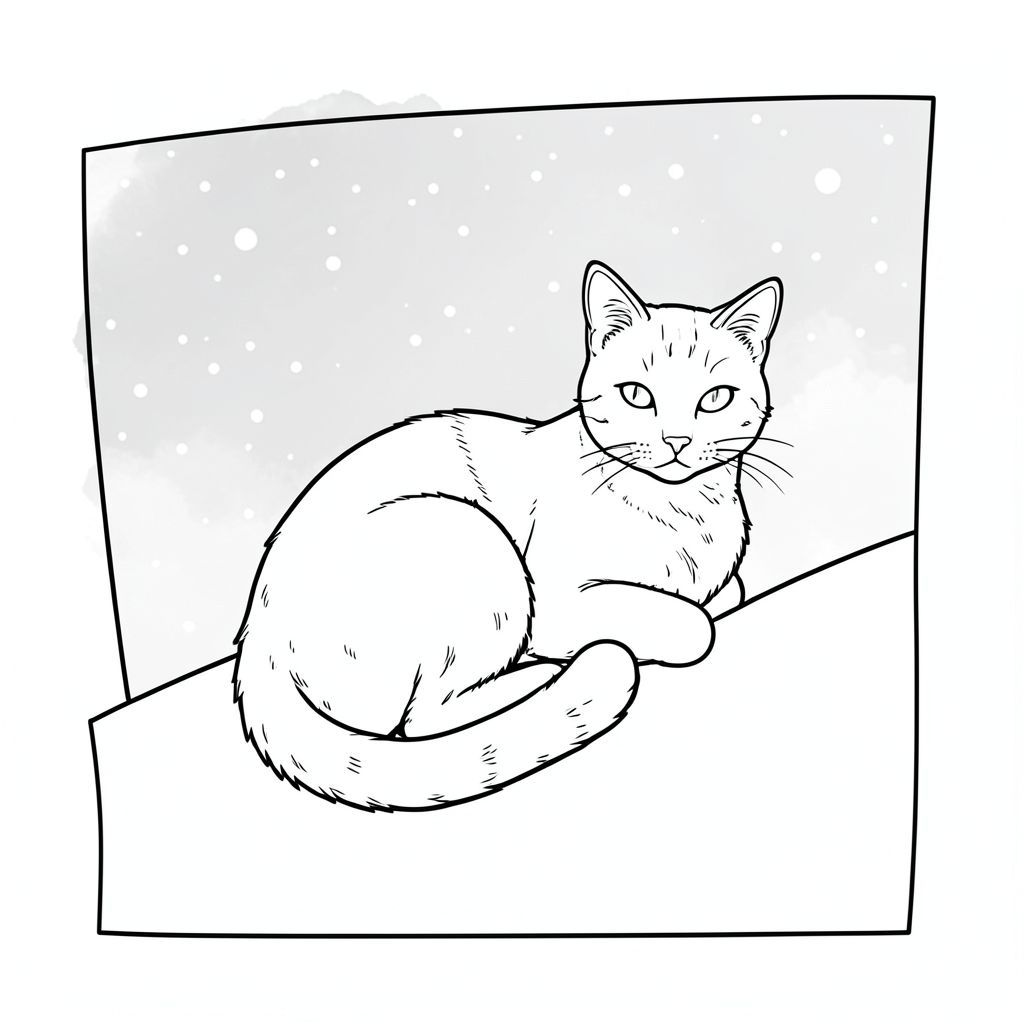 Toàn bộ là một tinh khiết, không trang trí và trắng. Không có gradient, đổ bóng hoặc tô màu. Nội thất màu trắng của nền là một rất, gần như mờ, tạo cảm giác rộng rãi. Con mèo được đặt sao cho phần bên trong màu trắng của nền có thể nhìn thấy một chút, tạo ra sự tương phản nhẹ nhàng. Các yếu tố chính được nhấn mạnh: * Trọng tâm hoàn toàn là con mèo. * Nền là tối thiểu - mềm mại, tắt tiếng. * Hoàn toàn không đổ bóng, màu sắc hoặc độ dốc. * Nền nhẹ nhàng và tư thế của mèo được thiết kế để gợi lên cảm giác yên bình và tĩnh lặng.