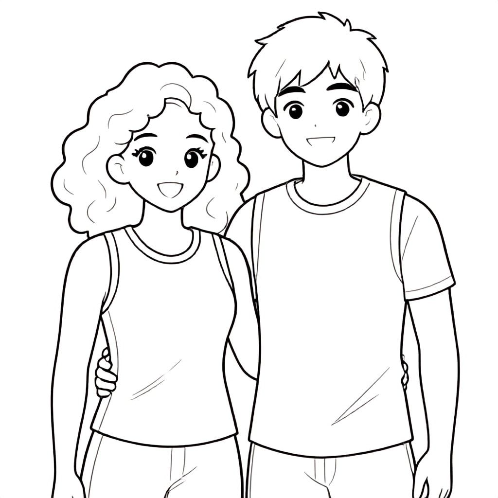 Tranh tô màu cặp đôi màu đen tóc xoăn thực tế và trong highscool Cả hai đều mặc trang phục thể thao