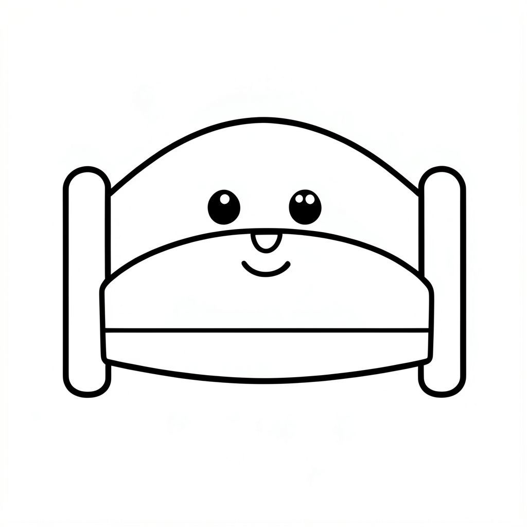 Tranh tô màu đen trắng đơn giản, đường dày đậm, giường đơn giản, ở giữa, không có nền, kiểu trẻ mới biết đi, dành cho trẻ từ 3-5 tuổi. Phong cách kawaii dễ thương, khuôn mặt tươi cười.