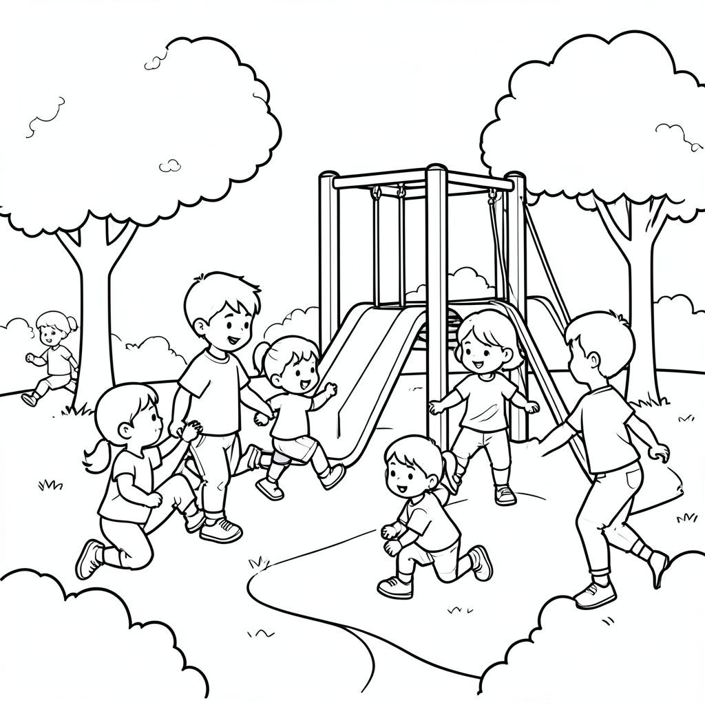 Trẻ em chơi trong sân chơi.